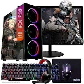 1 Computador Gamer Completo TOB Intel Core i5 SSD 480GB 16GB Teclado Mouse Mouse Pad e Headset Gamer Monitor 19" Windows 10 Pro Trial