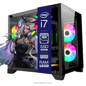 1 Computador PC Gamer Completo TOB Intel Core i7 SSD 480GB 16GB Teclado Mouse Mouse Pad e Headset Gamer Joystick Monitor 21.5” Windows 10 Pro Trial