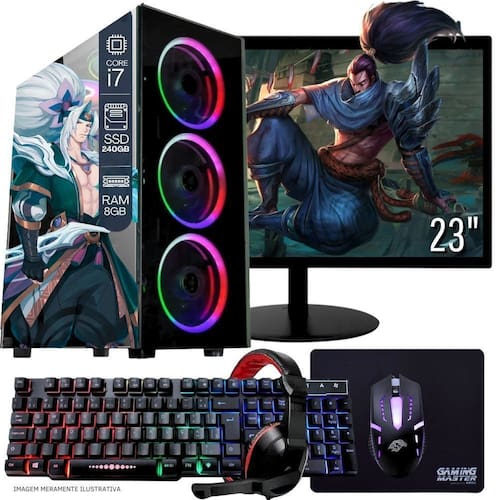 1 Computador Gamer Completo TOB Intel Core i7 SSD 240GB 8GB Teclado Mouse Mouse Pad e Headset Gamer Monitor 23” Windows 10 Pro Trial