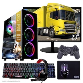1 Computador Gamer Completo TOB Intel Core i7 SSD 480GB 16GB Teclado Mouse Mouse Pad e Headset Gamer Joystick Monitor 23” Windows 10 Pro Trial