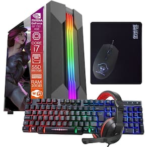 Com o Computador Gamer Intel Core i7 8GB de Memória SSD 480GB Placa de Vídeo Geforce 4GB Teclado Mouse Pad e Headset Gamer gabinete gamer RGB com Windows e diversos jogos instalados, você terá alto desempenho e designer Gamer moderno.