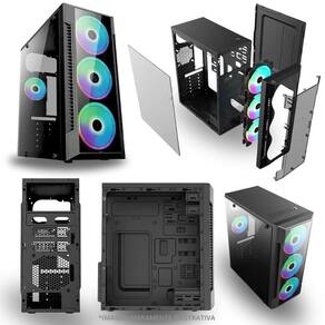 Gabinete Gamer RGB com lateral em vidro temperado. PSU Cover para melhor acabamento interno. Sistema de refrigeração eficiente, equipado com 3 Fans RGB frontais.