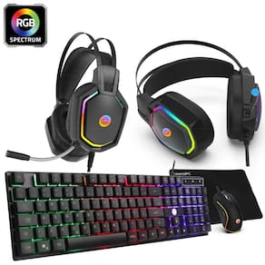 Com visual futurista, ele vem equipado com gabinete premium RGB, kit gamer completo com mouse, teclado, mousepad e headset.