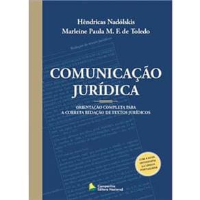 O advogado é um profi ssional da palavra, pois Justiça e palavra apresentam vínculos estreitíssimos. Por meio do manejo preciso e adequado do léxico, o profi ssional de Direito defende e acusa, contesta e persuade, convence com convicção. Para pessoas que desejam ingressar nas lides jurídicas, é fundamental reiterar que o sucesso na profi ssão equivale diretamente à sua habilidade e ao correto manuseio com as palavras. Nesse sentido, o livro Comunicação jurídica, dos professores doutores da USP Hêndricas Nadólskis e Marleine Paula M. F. de Toledo, proporciona elucidativas aulas de redação e gramática em um contexto conhecido pelos que atuam ou irão atuar na área de Direito. Pode ainda auxiliar pessoas que tenham interesse em dominar as várias práticas redacionais e propicia o aprofundamento gramatical.