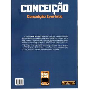 Esta obra conta a trajetória de Conceição Evaristo, nascida e criada na favela do Pindura Saia, mulher, negra, que se tornou professora, doutora em Literatura e uma das grandes escritoras brasileiras. A coleção BLACK POWER apresenta biografias de personalidades negras que marcaram época e se tornaram inspiração e exemplo para as novas gerações. Os textos simples e as belas ilustrações levarão os pequenos leitores a uma viagem repleta de fatos históricos e personagens que se transformaram em símbolo de resistência e superação. Esse livro é voltado para crianças e adolescentes. A ideia é que elas percebam que podem ter representatividade negra desde a infância.