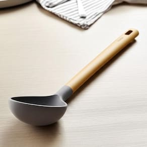 - Ergonomia e Estilo: O cabo de madeira natural oferece uma pegada firme e confortável, além de um toque de charme rústico e elegância. O design minimalista na cor cinza complementa qualquer decoração de cozinha, da mais clássica à mais moderna.