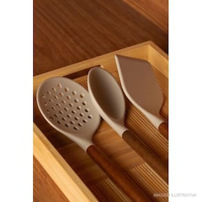 A Concha de Silicone Cor Creme com Cabo em Madeira é uma peça funcional e elegante, ideal para facilitar o manuseio de ingredientes ou aplicação de produtos.