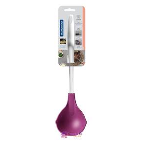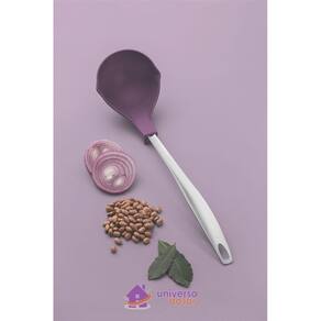 Concha Tramontina Movin em Nylon com Cabo de Aço Inox Lilas A Concha Tramontina Movin em Nylon com Cabo de Aço Inox Lilas é um item essencial em sua cozinha! Pensada especialmente em você e para tornar seu dia a dia mais prático, ela é altamente resistente e durável, possui escala de medidas e pode ser utilizada em temperaturas de até 180° C. Além de não reter odores, ser fácil de limpar e poder ser levada à máquina de lavar louças todos os dias. Um item com desgin inovador e cor vibrante que vai completar a sua cozinha! Informações Gerais Concha de nylon, que resiste até uma temperatura de 180 °C. Cabo de aço inox com furo passante possibilitando que seja pendurado na sua cozinha. Utensílio ideal para uso em panelas com revestimentos antiaderentes e cerâmicos, pois não danifica o produto. Pode ir à máquina de lavar louças facilitando seu dia a dia.