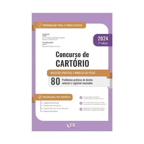 A presente obra é o segundo lançamento da Coleção “Concurso de Cartório: Preparação para a Prova Escrita”, projetada para otimizar a preparação para a prova escrita dos concursos de Outorga de Serventias Extrajudiciais dos diversos estados. Enquanto no primeiro volume o foco recaiu sobre as “Questões Discursivas e Modelos de Redação”, o presente livro traz uma preparação intensiva para a elaboração da peça prática. O presente livro é composto por 60 exercícios práticos, divididos de acordo com a especialidade a que se referem, quais sejam: Tabelionato de Notas, Tabelionato de Protesto, Registro Civil das Pessoas Naturais e Registro de Imóveis. Os problemas práticos são baseados em enunciados autênticos, formulados pelo autor nos moldes geralmente exigidos nesses certames, e seguidos de seus respectivos gabaritos, também elaborados tendo em vista os padrões de correção verificados nos últimos concursos. Os gabaritos contêm os modelos das peças notariais e registrais correspondentes ao problema prático apresentado, e abrangem diversas espécies de atos que podem ser exigidos nessa desafiadora parte da prova.