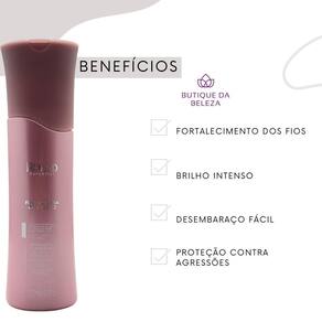 Benefícios: Fortalecimento dos fios: previne a quebra, deixando o cabelo mais resistente. Brilho intenso: proporciona um brilho luminoso e saudável. Desembaraço fácil: facilita o penteado, deixando os fios macios e sedosos. Proteção contra agressões: protege os cabelos dos danos externos, como calor e poluição.