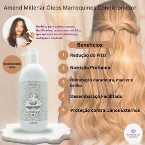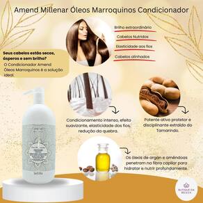 Somos a butique da beleza Uma empresa especializada no comércio de cosméticos e semijoias. Estamos sempre entre os melhores vendedores. Nosso compromisso é com você Seu conforto e segurança são nossos propósitos Servir e ajudar são nossos deveres Condicionador amend óleos marroquinos Se seus cabelos estão secos, ásperos e sem brilho, o condicionador amend óleos marroquinos é a solução ideal para transformar a textura e a aparência dos fios. Enriquecido com óleos preciosos de argan e amêndoas, ele proporciona nutrição intensa enquanto desembaraça e hidrata profundamente, deixando seus cabelos macios, disciplinados e radiantes. Indicado para qual tipo de cabelo Perfeito para cabelos secos, danificados, opacos ou com frizz, que necessitam de hidratação, nutrição e controle. Benefícios Nutrição profunda: os óleos marroquinos ricos em ácidos graxos nutrem profundamente os fios. Hidratação duradoura: recupera a umidade essencial dos cabelos, evitando o ressecamento. Redução do frizz: ajuda a selar as cutículas, deixando os fios mais alinhados e disciplinados. Desembaraço facilitado: deixa os cabelos fáceis de pentear, reduzindo a quebra. Maciez e brilho: proporciona uma textura suave e um brilho intenso desde a primeira aplicação. Proteção contra danos externos: cria uma camada protetora contra os efeitos do calor, poluição e ferramentas térmicas. Resultados Cabelos nutridos, macios, hidratados e com brilho extraordinário. Os fios ficam mais alinhados, livres de frizz e fáceis de desembaraçar. Modo de uso Após lavar os cabelos com o shampoo amend óleos marroquinos, aplique o condicionador no comprimento e pontas. Massageie suavemente e deixe agir por 1 a 2 minutos. Enxágue completamente. Dica da butique da beleza Para um tratamento ainda mais poderoso, use em conjunto com a máscara amend óleos marroquinos e garanta cabelos ainda mais nutridos e saudáveis Dúvidas frequentes Posso usar todos os dias Sim ele é ideal para uso diário, especialmente em cabelos que precisam de hidratação constante. Ajuda a controlar o frizz Com certeza o condicionador sela as cutículas, ajudando a reduzir o frizz e deixando os cabelos mais alinhados. Funciona em cabelos oleosos Embora seja mais indicado para cabelos secos, pode ser em cabelos mistos, aplicando apenas no comprimento e nas pontas. Pesa nos fios finos Não sua fórmula é leve, proporcionando hidratação sem comprometer o volume natural. Preciso usar com o shampoo da mesma linha O uso combinado com o shampoo e a máscara da linha potencializa os resultados, garantindo fios ainda mais saudáveis e nutridos. Se tiver mais dúvidas, estamos aqui para ajudar você a alcançar cabelos incríveis e cheios de vida