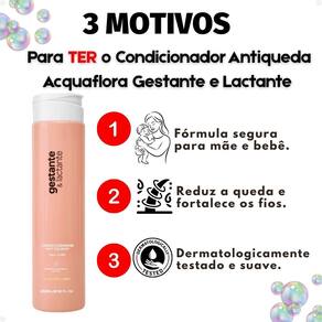 Condicionador Antiqueda Acquaflora Gestante e Lactante 250ml Descubra o Condicionador Antiqueda Acquaflora Gestante e Lactante 250ml, a solução ideal para mulheres que enfrentam a queda de cabelo durante a gravidez e a amamentação. Imagine cabelos mais fortes e saudáveis, sem a preocupação da queda excessiva. Enriquecido com uma fórmula suave e cientificamente comprovada, este condicionador desembaraça seus cabelos instantaneamente e age eficazmente na redução da queda, estimulando o crescimento de fios novos. Com ingredientes naturais como as Microalgas do Tahiti, o Extrato de Alecrim e os Aminoácidos, ele fortalece cada fio, proporcionando brilho e maciez, garantindo um cuidado completo e delicado para você e seu bebê. Ideal para quem busca beleza, segurança e bem-estar durante essa fase especial.