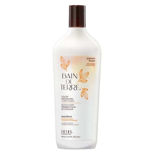 Condicionador que preserva a cor da flor de maracujá Bain de Terre, hidratação luxuosa para cores vibrantes e proteção contra o desbotamento, com óleos de argan e monoi, sem parabenos, vegano, 13,5 fl oz