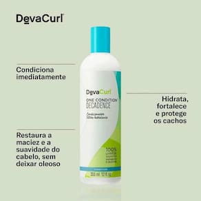 O Condicionador Deva Curl One Condition Decadence desembaraça e acaba com o ressecamento do cabelo com a reposição da água natural que compõe a fibra capilar saudável, além de conservar as cutículas protetoras seladas para que a hidratação dure mais tempo no fio e ele fique sem frizz.
