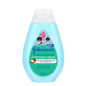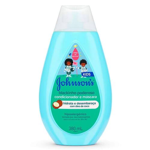 O Condicionador e Máscara Johnson's Kids Blackinho Poderoso 380ml é um produto 2 em 1 que condiciona os fios já hidratando e tratando os cabelos das crianças, desenvoldido especialmente para as curvaturas 3B a 4C. Foi cocriado com consumidores para desembaraçar e deixar os cachinhos macios e hidratados: sua fórmula com óleo de coco define e ativa os cachos, além de contar com a exclusiva tecnologia chega de lágrimas, que evita irritação nos olhos. Sua fórmula é também liberada: livre de parabenos, sulfatos, corantes, silicones e petrolatos.