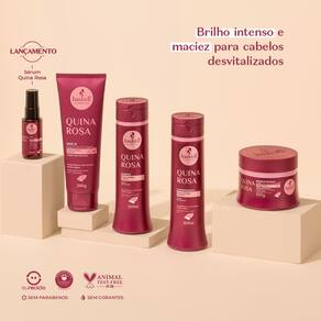 A linha Quina Rosa foi desenvolvida para revitalizar os cabelos opacos e sem vida, e promover o condicionamento intensivo dos fios. Ela proporciona brilho, maciez e possui ação antifrizz, sua formulação conta com o extrato de quina rosa, que blinda os fios das agressões externas.