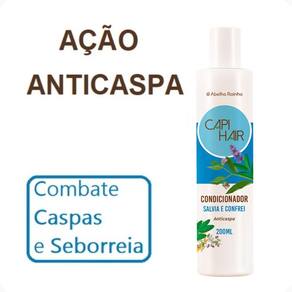 Condicionador Hidratante Anticaspa Controla Oleosidade Descamação Seborreia Sálvia Confrei 200ml Abelha Rainha REF 2616 A Importados da Malu apresenta... Condicionador Hidratante Anticaspa Sálvia e Confrei Capi Hair 200ml Abelha Rainha O Capi Hair Condicionador Anticaspa Sálvia e Confrei 200ml completa o cuidado anticaspa com hidratação na medida certa. Sua fórmula leve e eficaz nutre os fios sem pesar, fortalece o couro cabeludo e ajuda no controle da oleosidade, da descamação, da seborreia. Com ativos naturais, deixa os cabelos macios, saudáveis e com toque sedoso. Ideal para uso diário, especialmente em cabelos com tendência à caspa e oleosidade. Benefícios principais: -auxilia no controle da caspa, -hidrata e desembaraça sem pesar, -proporciona brilho e leveza aos fios, -ação e revitalizante no couro cabeludo, -perfeito para uso combinado com o shampoo da linha. Ativos Naturais: -sálvia: controla oleosidade e tonifica o couro cabeludo, -confrei: hidrata, suaviza e fortalece os fios. Extrato de Confrei: -possui ação , que ajuda a reduzir inflamações e irritações no couro cabeludo, aliviando a coceira e o desconforto. -extrato de Sálvia: Controla a produção de óleo no couro cabeludo. -d-pantenol: Hidrata, suaviza o couro cabeludo e promove uma sensação de alívio. Modo de usar: Após lavar os cabelos com o shampoo Capi Hair, aplique o condicionador do comprimento às pontas. Deixe agir por 1 a 2 minutos e enxágue bem. REFERÊNCIA: 2616 Marca: Não Informado