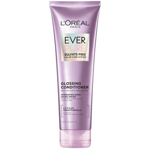 Condicionador de brilho sem sulfato L'Oréal Paris, intensifica o brilho e a maciez do cabelo, cuidado capilar vegano com pH balanceado e com infusão de óleo de argan, EverPure, 8,5 fl oz