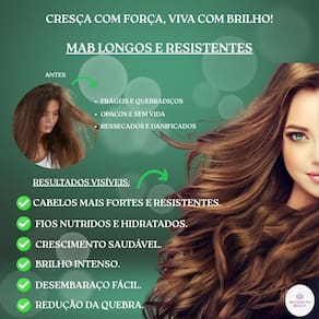 Combine o uso com o Shampoo Mab Longos e Fortes e o Tônico Mab Long & Force Crescimento Capilar para um tratamento completo que transforma seus cabelos!