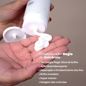 O Condicionador Magia de Unicórnio Forever Liss é a magia que faltava para os fios secos e danificados. Isso porque seu blend de óleos de coco, abacate e pracaxi somado à Tecnologia Magic Glow proporciona brilho imediato, reparação e fortalecimento dos cabelos.