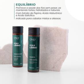 COMO USAR:Nos cabelos molhados, aplique o condicionador em todo comprimento dos fios até as pontas, massageando suavemente.Enxágue.Para melhores resultados, use o Shampoo Equilíbrio Only Haircare.