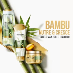 A coleção Pantene Bambu Nutre e Cresce foi criada para ajudar no ciclo da quebra de cabelo, nutrindo desde as raízes, para o cabelo crescer mais forte. O Condicionador trata o cabelo e as cutículas, deixando-o mais forte e sedoso, com uma poderosa hidratação. Com extrato de bambu, óleo de rícino e cafeína. Contém 0% de sulfatos, parabenos e óleos minerais. O poder de combate à quebra de Pantene Bambu está disponível em produtos de toda a linha, shampoo, condicionador, creme para pentear, máscara nutritiva. Agora, você pode combater a quebra porque um Cabelo Pantene diz meu crescimento não tem limites! Cabelo mais forte e sedoso com uma poderosa hidratação Para um cabelo mais resistente O bambu é mais forte que madeira, concreto e aço e pode ser flexível com o vento, sem quebrar O óleo de rícino, que é rico em ômega 9, tem poder hidratante e pH balanceado A cafeína, conhecida por promover regeneração celular, também melhora a circulação sanguínea Uma nova fragrância que transmitirá uma sensação de natureza, com um aroma inspirado nas florestas de bambu Ean: 7500435154277