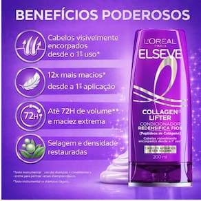 Condicionador Elseve Collagen Lifter Redensifica Fios 400ml O Condicionador Elseve Collagen Lifter Redensifica Fios foi desenvolvido para restaurar a densidade da fibra e selar os fios, deixando o cabelo visivelmente mais encorpado e com maciez extrema sem pesar. Indicado para todos os tipos de cabelo, especialmente cabelos afinados e sem volume.
