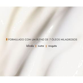 Conta com os ativos Myrica Fruit Wax, que possui alto poder de blindagem contra o ressecamento, e Miracle Oils, um blend de 7 óleos milagrosos, que oferece aumento na elasticidade e resistência, e resgate da integridade do fio.