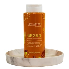 Após lavar os cabelos com o Shampoo, aplique o Condicionador Argan, massageie e deixe agir por 3 minutos, enxágue em seguida. Para melhores resultados utilize os produtos da linha.