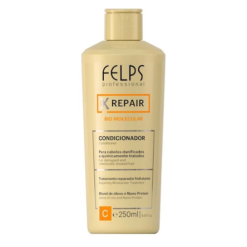 Aplique o condicionador após o uso do shampoo ou máscara, massageando o comprimento dos fios e enxágue completamente. Para melhores resultados, convém utilizar associado aos demais produtos da linha Felps XRepair.