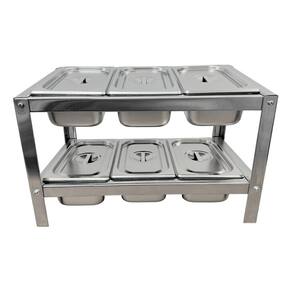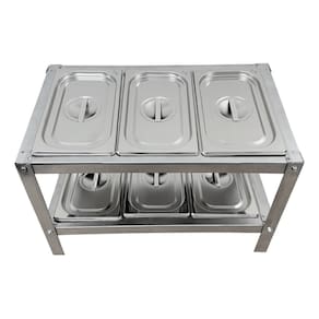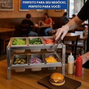 Condimentadora de mesa em Aço Inox, com 6 cubas 1/4 x 100MM e tampas. Não refrigerado.Porta-fio
