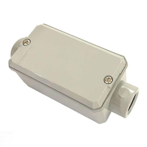 Os conduletes com rosca NPT da Tramontina são ideais para instalações elétricas aparentes - residenciais, comerciais e industriais - em ambientes, internos ou externos, onde possa existir líquidos, poeiras, gases e vapores não inflamáveis. Acompanha junta de vedação IP54 e possui rosca no formato cônico, garantindo perfeita vedação. Produzido em alumínio, proporciona elevada resistência mecânica e a corrosão. Orientações Pintura eletrostática a pó padrão poliéster. Cor cinza Munsell N 6.5. Características Gerais EAN13 7891435007015 DUN14 17891435007012 NCM 7609.00.00 Peso Líquido 0,7300 kg. Peso Bruto 0,7380 kg. Metragem 0,001880 m³. Dimensões Embalagem (Compr. X Larg. X Alt.) 220x 91x 94 mm. Dimensões Produto (Compr. X Larg. X Alt.) 220x 91x 94 mm. Cor 1 C0C0C0 Hexa Observações A instalação e segurança: É importante que o produto seja instalado por profissional habilitado. Antes de instalar, desligue a energia elétrica.