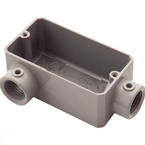 Produzido em alumínio, possui elevada resistência mecânica e a corrosão, sendo imprescindível para instalações eletricas aparentes - residenciais, comerciais e industriais - proporcionando uma solução, quando não se tem a intenção de quebrar a parede para embutir a fiação. A aplicação do Kit de Vedações (oferecido separadamente) possibilita, de forma simples e eficiente, obter o índice de proteção IP 54 - ideal para instalações externas. Orientações Pintura eletrostática a pó na cor cinza Munsell N 6.5 Características Gerais EAN13 7891435002089 DUN14 17891435002086 NCM 7609.00.00 Peso Líquido 0,1270 kg. Peso Bruto 0,1280 kg. Metragem 0,000316 m³. Dimensões Embalagem (Compr. X Larg. X Alt.) 113x 70x 40 mm. Dimensões Produto (Compr. X Larg. X Alt.) 109x 67x 40 mm. Cor 1 C0C0C0 Hexa Dimensão Extra A 93,0 mm. Dimensão Extra B 51,0 mm. Dimensão Extra C 40,0 mm. Dimensão Extra D 18,0 mm. Observações A instalação e segurança: É importante que o produto seja instalado por profissional habilitado. Antes de instalar, desligue a energia elétrica.