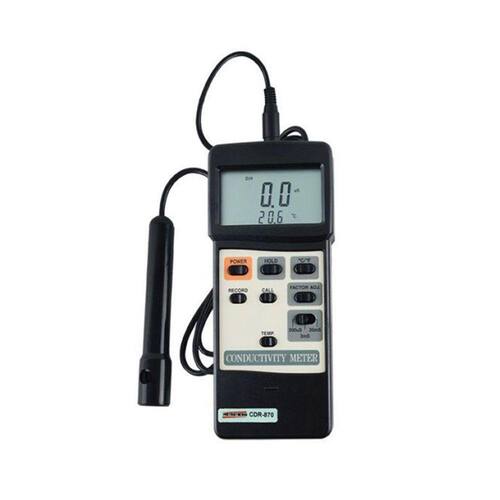 CONDUTIVÍMETRO (MEDIDOR DE EC) MOD. CDR-870 DIGITAL PORTÁTIL, FAIXA DE 0 A 20MS COM INTERFACE RS-232 COM CERTIFICADO DE CALIBRAÇÂO RASTREÁVEL RBC DESCRIÇÃO: Condutivímetro (medidor de ec) mod. cdr-870 digital portátil, faixa de 0 a 20ms com interface rs-232 com certificado de calibração rastreável rbc DESCRIÇÃO CERTIFICADO CALIBRAÇÃO: Certificado de Calibração para Condutivímetro 3 pontos: 146,9 uS, 1,413 mS e 13,32 mS Calibração rastreável RBC Procedência: Laboratório de Calibração Instrutherm ESPECIFICAÇÕES TÉCNICAS: Display de cristal líquido (LCD) de 3 1/2 dígitos Escalas: Condutividade: 0,1 mS a 199,9 mS / 0,2 mS a 1,999 mS / 2 mS a 19,99 mS Precisão: ± 1% + 2 dígitos Resolução: 200uS - 0.1uS / 2mS - 0.001mS 20mS - 0.01mS Temperatura: 0 a 60ºC (32 a 140ºF) Resolução: 0.1ºC (0.1ºF) Precisão: ± 0.8ºC (1.5ºF) Compensação de temperatura: Manual ou automático (0 a 50ºC) Sensor separado do aparelho Tempo de resposta: Aprox. 0.8 seg. Tecla hold: Congela a leitura no display Memória: Máx., mín. e média Interface serial: RS-232 Temperatura de operação: 0 a 50ºC Umidade de operação: Máx. 80% RH Alimentação: 1 bateria de 9V • Dimensões / Peso: 168 x 80 x 35 mm / 350g ACESSÓRIOS FORNECIDOS: Estojo Sensor Manual de instruções Certificado de calibração