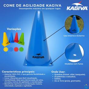 O cone de sinalização Kagiva é fabricado em PVC flexível e resistente, indicado para organização e demarcação de espaços em diferentes ambientes. Possui cores vivas que facilitam a visualização e pode ser utilizado em atividades recreativas, educacionais ou esportivas.