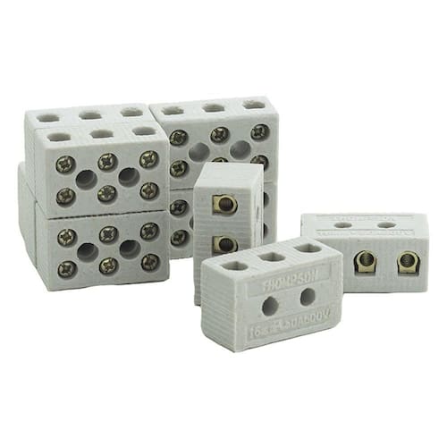 Características Principais: Cor: Branco Marca: Thompson Material: Porcelana Função: Realizar conexões elétricas seguras e confiáveis, oferecendo boa resistência térmica e isolamento elétrico. Conexões seguras em equipamentos elétricos residenciais, comerciais e industriais