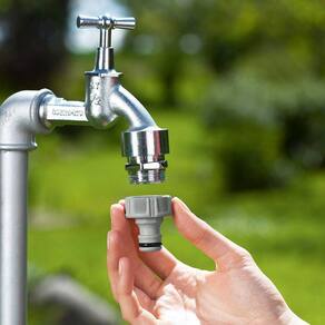 Este conector de torneira Gardena permite fixar uma mangueira de jardim a uma torneira. Manuseio fácil e confortável graças ao formato especial do conector de torneira.