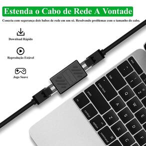 Conector Emenda Rj45 Extensor Cat5 Cat6 Cat7 Rede Game Dados Adaptador Cat7/6/5e Ethernet Lan RedeNós da Things Nerd garantimos total satisfação, compre com quem esta disposto a te oferecer a melhor qualidade e o melhor atendimento. Nossos produtos são enviados em embalagens apropriadas para não sofrer danos durante o transporte e são vendidos com garantia contra defeitos de fabricação. Caso tenha qualquer problema basta contatar nosso pós venda pelos canais de atendimento que iremos prontamente resolver para você.Emenda extensora para cabos de rede Rj45. A emenda é ideal para ocasiões onde o cabo de rede acaba se mostrando curto. Com duas entradas fêmeas, é possível estender um sinal em dois cabos, junta-os com a emenda extensora, sem perda da velocidade de conexão. O extensor possui uma ampla compatibilidade, sendo ideal para todos os padrões de cabos RJ45, incluindo Cat5, Cat6 e Cat7. O conector também é ideal para empresas e residências, oferecendo uma conexão confiável e sem perca da velocidade para dados e streamings, além de fornecer um upgrade para jogos, oferecendo uma experiência suave e sem interrupções. Item de altíssima qualidade, o extensor é feito em plástico ABS de alta resistência e metal, com blindagem especial, garantindo maior durabilidade e resistência. Um item indispensável.Não Acompanha CaboDADOS RELEVANTES:- Cor: Preto;- Conector com Gênero Fêmea x Fêmea;- Compatível com Todos os Cabos RJ45 Cat5, Cat6, Cat7 ;- Comprimento: 3,5cm;- Largura Aproximada: 2cm;- Material: Plástico e Metal;- Design Compacto;Esta insatisfeito com sua compra Marca: Things Nerd