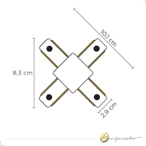 Modelo: Conector X para trilhos 2 fios de sobrepor Cor: Preto Corrente máx.: 10A Tensão Máx.: 250V Obs: Antes de instalar, cerifique se o trilho/acessório/luminária/lâmpada são compatíveis. Quantidade: 1 unidade