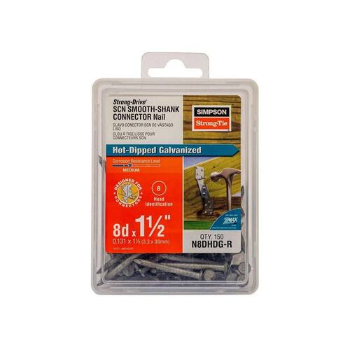 Conector estrutural Simpson Strong Tie N8DHDG Pregos galvanizados a quente de 1-1/2 polegadas por 0,131 polegadas de haste lisa de calibre 10, sem tamanho, sem cor - Aproximadamente 147 pregos por libra - Diâmetro da cabeça de 5/16 polegadas - Conector estrutural