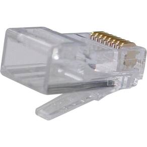 Marca: furukawa sohoplus Modelo: rj45 conector macho cat.5e para cabo slido e flexvel. Especificaes: Sistemas de cabeamento estruturado para trfego de voz, dados e imagens, segundo requisitos da norma ansi/tia/eia-568b.2 (balanced twisted pair cabling components), para cabeamento horizontal ou secundrio. Uso interno, em ponto de acesso na rea de trabalho para tomadas de servios em sistemas de cabeamento estruturado. Categoria 5e, u/utp; Corpo em termoplstico de alto impacto no propagante chama; Vias de contato produzidas em bronze fosforoso com camadas de 2,54 Micrmetros de nquel e 1,27 micrmetros de ouro; Compatvel com os padres de montagem t568a e t569b; Contatos adequados para condutores slidos ou flexveis; Produto que atende polticas de respeito ao meio-ambiente (rohs). Normas aplicveis: eia/tia 568 b.2 e seus adendos, iso/iec11801, nbr 14565, fcc 68.5. Certificaes ul listed - e173971 / iso9001/iso14001 - a1969/a10659. Caracterstica construtiva: Cor: transparente; Tipo de conector: rj-45; Tipo de cabo: u/utp cat.5e; Dimetro de condutor: 26 a 22 awg; Material de contato eltrico: 8 vias em bronze fosforoso com 50in (1,27 m) de ouro e 100 in (2,54m) de nquel; Material do corpo do produto: termoplstico no propagante a chama Ul 94v-0; Padro de montagem: t568a e t568b.