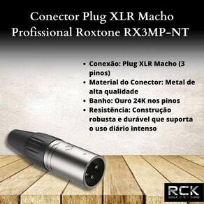 Conector Plug XLR Macho Profissional Roxtone RX3MP-NT Conector Plug XLR Macho Profissional Roxtone RX3MP-NT Se você está procurando um conector de áudio de alta qualidade para seus equipamentos profissionais, o Conector Plug XLR Macho Profissional Roxtone RX3MP-NT é uma escolha excepcional. Com sua construção robusta e durável, este conector é capaz de suportar o uso diário intenso e fornecer um desempenho de áudio sem falhas.