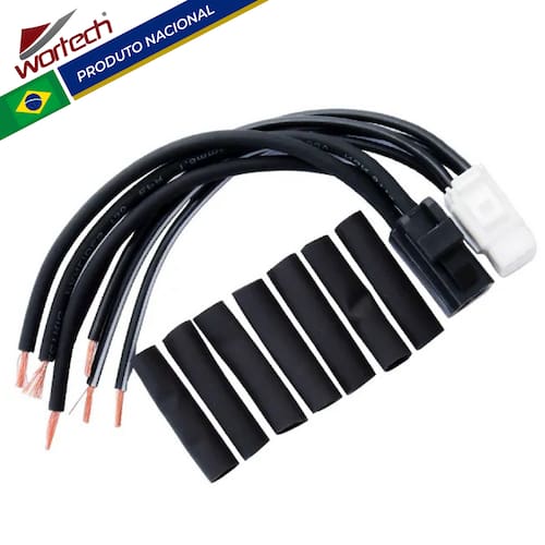-Dados Técnicos: -Instalação: É necessário soldar os cabos -Conector: Em Nylon de alta qualidade com trava -Terminais: Terminais metálicos estanhados (cor prata) -Chicote: Cabos de alta temperatura -Acabamento: termo retrátil para um melhor acabamento das emendas