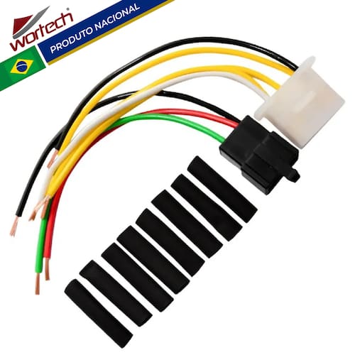 -Dados Técnicos: -Instalação: É necessário soldar os cabos -Conector: Em Nylon de alta qualidade com trava -Terminais: Terminais metálicos estanhados (cor prata) -Chicote: Cabos de alta temperatura -Acabamento: termo retrátil para um melhor acabamento das emendas