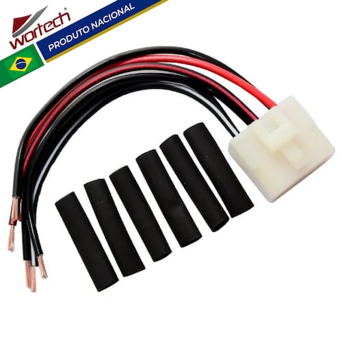 -Dados Técnicos: -Instalação: É necessário soldar os cabos -Conector: Em Nylon de alta qualidade com trava -Terminais: Terminais metálicos estanhados (cor prata) -Chicote: Cabos de alta temperatura -Acabamento: termo retrátil para um melhor acabamento das emendas