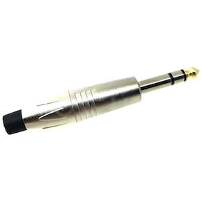 Conector Stereo P10 Hjh Tipo: P10 macho de linha/cabo Stereo Contatos: Stereo 3 polos de contato Construção: Zinco e níquel Área de solda ampliada no pino terra Bitola de cabo máxima recomendada: 16 AWG / 1,5 mm Capacidade máxima de corrente: 10A Classe de proteção: IP40 Peso: 0,04kg