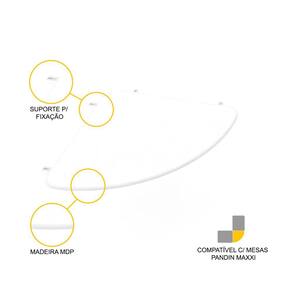 Sempre tem aquele colega do escritório que é responsável por unir pessoas e guiar os projetos para o melhor objetivo. A função dessa conexão arredondada na cor branca é essa: conectar as mesas do ambiente, para que não só elas, mas todos os presentes, possam se juntar e produzir em um único ambiente. É uma solução simples, barata e prática, principalmente para quem já possui as Mesas da Linha Maxxi Pandin em seu escritório e precisa redistribuir o ambiente. Fácil de usar, essa peça fixa as mesas por qualquer de seus lados, criando novas unidades e estações de trabalho, otimizando o tempo e orçamento de quem precisa de uma solução imediata. Esse acessório faz parte da Linha Maxxi de móveis para escritório da Pandin, a linha ideal para quem procura por ambientes de trabalho funcionais e formatos que permitem diversas formas de ambientação. Aposte certeiro na Linha Maxxi Pandin quando o assunto for praticidade, qualidade e versatilidade.