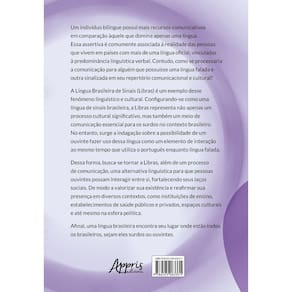 Um indivíduo bilíngue possui mais recursos comunicativos em comparação àquele que domina apenas uma língua. Essa assertiva é comumente associada à realidade das pessoas que vivem em países com mais de uma língua o?cial, vinculadas à predominância linguística verbal. Contudo, como se processaria a comunicação para alguém que possuísse uma língua falada e outra sinalizada em seu repertório comunicacional e cultural? A Língua Brasileira de Sinais (Libras) é um exemplo desse fenômeno linguístico e cultural. Con?gurando-se como uma língua de sinais brasileira, a Libras representa não apenas um processo cultural signi?cativo, mas também um meio de comunicação essencial para os surdos no contexto brasileiro. No entanto, surge a indagação sobre a possibilidade de um ouvinte fazer uso dessa língua como um elemento de interação ao mesmo tempo que utiliza o português enquanto língua falada.