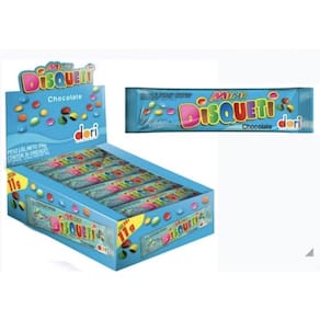 KIT COM 3 CAIXAS DE CONFEITO DE CHOCOLATE MINI DISQUETI COM 36 UNIDADES DE 11 GRAMAS CADA. DISQUETI MINI DORI 36X11G Pastilhas confeitadas e coloridas sabor chocolate, crocantes por fora e macias por dentro. Ideal para compor as lembrancinhas das crianças! Contém: 36 unidades de 11g cada Ingredientes: Açúcar, massa de cacau, leite em pó integral, gordura vegetal, manteiga de cacau, emulsificantes lecitina de soja e ésteres de ácido ricinoléico interesterificado com poliglicerol, corante inorgânico dióxido de titânio, glaceantes goma laca e cera de carnaúba, espessante goma arábica, sal, aromatizante, corantes artificiais tartrazina, amarelo crepúsculo, azul brilhante, vermelho 40 e eritrosina. NÃO CONTÉM GLÚTEN. Ean: 7896058510119
