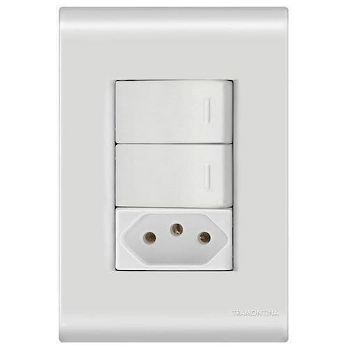 Interruptores e tomadas - tramontina liz branca conjunto completo com: 1 módulos de interruptor simples 1 módulos de interruptor 1 módulo de tomada 20a 1 placa para 3 módulos 4x2 1 suporte 4x2 2 parafusos os itens acima são enviados desmontados, para montar é fácil, só encaixar. Marca de conformidade de produtos certificados.
